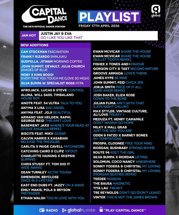 Posted November 27, 20205 yr Capital Dance (styled Capital DANCE) is a national digital radio station in the United Kingdom, owned and operated by Global and run as a spin-off from Capital. The station broadcasts from studios at Leicester Square in London alongside its siblings Capital and Capital Xtra. The station predominantly plays contemporary and current electronic dance music. The station launched on 1 October 2020 with little prior notice. Listen live: https://www.globalplayer.com/live/capitaldance/uk/ https://www.radio-uk.co.uk/capital-dance https://www.facebook.com/CapitalDanceUK/ https://www.instagram.com/capitaldance/ Playlist November 9, 2020 November 16, 2020 November 23, 2020 Edited February 23, 20251 yr by JOTA
