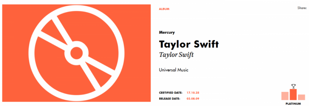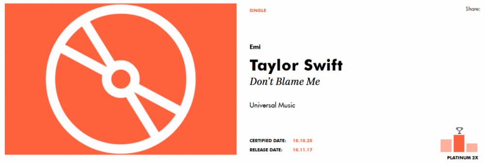 Posted April 7, 20241 yr SINGLES:5x Platinum (1):Shake It Off - 31st May 20244x Platinum (3):Cruel Summer - 2nd May 2025Blank Space - 9th May 2025Love Story - 30th May 2025 3x Platinum (2):Anti-Hero - 12th April 2024I Knew You Were Trouble - 19th July 2024 2x Platinum (12):We Are Never Ever Getting Back Together - 12th August 2022I Don't Wanna Live Forever (w/ Zayn) - 28th July 2023Style - 15th September 2023Look What You Made Me Do - 13th October 2023Wildest Dreams - 23rd February 2024Lover - 3rd May 2024Bad Blood (ft. Kendrick Lamar) - 27th September 2024You Need To Calm Down - 14th February 2025cardigan - 2nd May 2025All Too Well (Taylor's Version) - 13th June 2025You Belong With Me - 3rd October 2025Don't Blame Me - 10th October 2025 Platinum (25):Everything Has Changed (ft. Ed Sheeran) - 17th May 2019Me! (ft. Brendon Urie) - 10th July 202022 - 19th February 2021...Ready For It? - 12th May 2023willow - 12th May 2023Delicate - 26th May 2023exile (ft. Bon Iver) - 1st September 2023august - 5th January 2024Lavender Haze - 26th January 2024The Man - 26th January 2024Karma - 16th February 2024Love Story (Taylor's Version) - 26th July 2024Fortnight (ft. Post Malone) - 16th August 2024Getaway Car - 23rd August 2024Gorgeous - 22nd November 2024champagne problems - 6th December 2024I Can Do It With A Broken Heart - 6th December 2024Wildest Dreams (Taylor's Version) - 31st January 2025my tears ricochet - 14th February 2025Paper Rings - 11th April 2025You Belong With Me (Taylor’s Version) - 25th April 2025Is It Over Now? (Taylor's Version) - 9th May 2025the 1 - 20th June 2025You're On Your Own, Kid - 8th August 2025Bejeweled - 24th October 2025 Gold (23):Enchanted - 7th July 2023Out Of The Woods - 27th October 2023End Game (ft. Ed Sheeran & Future) - 5th January 2024Snow On The Beach (ft. Lana Del Rey) - 26th January 2023Midnight Rain - 21st June 2024the last great american dynasty - 5th July 2024Our Song - 2nd August 2024illicit affairs - 9th August 2024I Did Something Bad - 6th September 2024this is me trying - 6th September 2024mirrorball - 11th October 2024betty - 15th November 2024Miss Americana & The Heartbreak Prince - 29th November 2024Maroon - 13th December 2024Christmas Tree Farm - 27th December 2024Down Bad - 28th February 2025The Archer - 28th February 2025I Knew You Were Trouble (Taylor's Version) - 4th April 2025Welcome To New York - 4th April 2025Who's Afraid Of Little Old Me? - 11th April 2025invisible string - 30th May 2025Vigilante Shit - 12th September 2025Call It What You Want - 19th September 2025 Silver (93):Red - 15th May 2020Teardrops On My Guitar - 13th August 2021Mine - 17th September 2021Mean - 3rd December 2021All Too Well (2012) - 13th May 2022Safe & Sound (ft. The Civil Wars) - 8th July 2022All You Had To Do Was Stay - 25th November 2022I Forgot That You Existed - 16th December 2022Back to December - 20th January 2023London Boy - 17th March 2023no body, no crime (ft. HAIM) - 5th May 2023Mr Perfectly Fine (Taylor's Version) - 26th May 2023New Romantics - 26th May 2023seven - 9th June 2023Cornelia Street - 30th June 2023Clean - 4th August 2023Death By A Thousand Cuts - 4th August 2023The Story Of Us - 11th August 2023Better Than Revenge - 18th August 2023gold rush - 25th August 2023How You Get The Girl - 1st September 2023Mastermind - 8th September 2023Question...? - 22nd September 2023right where you left me - 27th October 2023I Think He Knows - 17th November 2023Dress - 8th December 2023'tis the damn season - 8th December 2023tolerate it - 8th December 2023Afterglow - 15th December 2023Would've, Could've, Should've - 12th January 2024The Great War - 1st March 2024mad woman - 8th March 2024Sweet Nothing - 15th March 2024Daylight - 29th March 2024King Of My Heart - 29th March 2024Now That We Don't Talk (Taylor's Version) - 29th March 2024Labyrinth - 5th April 2024The Way I Loved You (Taylor's Version) - 5th April 202422 (Taylor's Version) - 12th April 2024I Can See You (Taylor's Version) - 12th April 2024All Of The Girls You Loved Before - 19th April 2024I Wish You Would - 10th May 2024peace - 24th May 2024Dancing With Our Hands Tied - 7th June 2024Red (Taylor's Version) - 7th June 2024Enchanted (Taylor's Version) - 14th June 2024the lakes - 14th June 2024Fearless (Taylor's Version) - 21st June 2024marjorie - 28th June 2024But Daddy I Love Him - 5th July 2024This Is Why We Can't Have Nice Things - 5th July 2024Style (Taylor's Version) - 19th July 2024So Long, London - 26th July 2024The Tortured Poets Department - 2nd August 2024ivy - 2nd August 2024Guilty As Sin? - 9th August 2024My Boy Only Breaks His Favorite Toys - 9th August 2024The Smallest Man Who Ever Lived - 9th August 2024Blank Space (Taylor's Version) - 23rd August 2024Florida!!! (ft. Florence + The Machine) - 23rd August 2024Picture To Burn - 23rd August 2024evermore (ft. Bon Iver) - 13th September 2024False God - 20th September 2024Nothing New (Taylor's Version) - 20th September 2024epiphany - 4th October 2024loml - 8th November 2024So High School - 15th November 2024Slut (Taylor's Version) - 22nd November 2024You're Losing Me - 22nd November 2024Bad Blood (Taylor's Version) - 6th December 2024hoax - 13th December 2024New Year's Day - 24th January 2025coney island (ft. The National) - 31st January 2025Shake It Off (Taylor's Version) - 7th February 2025The Alchemy - 7th February 2025cowboy like me - 21st February 2025Message In A Bottle (Taylor's Version) - 21st February 2025long story short - 14th March 2025us. (Gracie Abrams ft. Taylor Swift) - 14th March 2025Wonderland - 11th April 2025This Love (Taylor's Version) - 18th April 2025Hits Different - 25th April 2025Fresh Out The Slammer - 23rd May 2025So It Goes... - 6th June 2025Say Don't Go (Taylor's Version) - 11th July 2025Bigger Than The Whole Sky - 25th July 2025Paris - 1st August 2025State Of Grace (Taylor's Version) - 5th September 2025happiness - 19th September 2025I Bet You Think About Me (Taylor's Version) - 19th September 2025Out Of The Woods