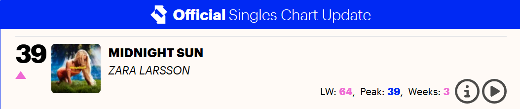 Monday at 18:233 days 12 minutes ago, DanielCarey said:#39 in the mids. We might be having a top 40 smash on our hands. Very well-deserved, it’s an incredible song!