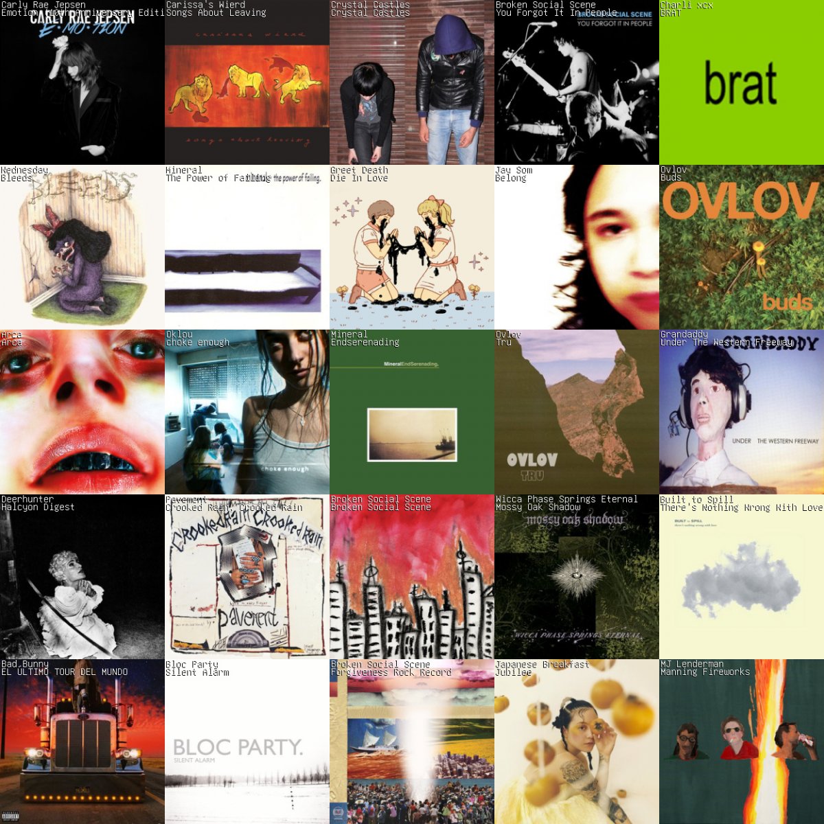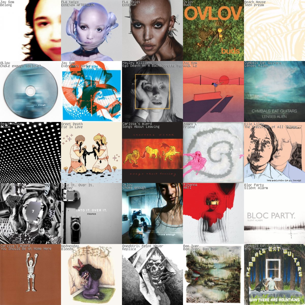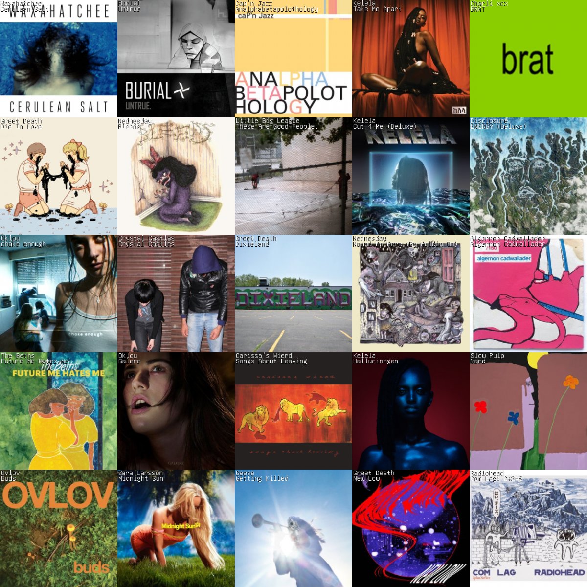 Collage of my most listened to albums in the last month.