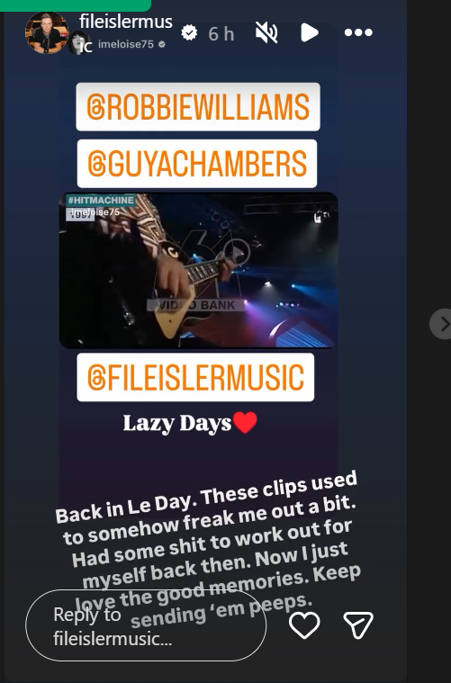 He apologised that it had taken six years to get an album out and that it wouldn't be that long next time. He said at stadium gigs he has to play the old hits because that is what people want to hear but would love to do more of these intimate shows and sing different songs. That got a massive cheer. 😁 In the chat he said that real life was difficult at at the moment as he knew it was for everyone. He mentioned Gwen with her ongoing health struggles. and one of the kids had been unwell. He talked about Teddy's song-writing.