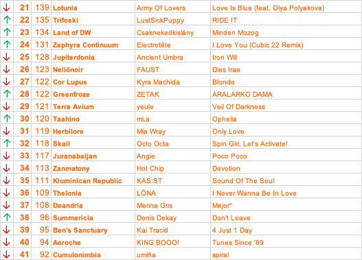 2 hours ago2 hr Author TRIFOSKI 47/63On 02/02/2026 at 23:20, seven. said:+18 underscores - “Do It” [Scotland 2]+15 Storefront Church - “The High Room” [Dalisska]+13 Octo Octa - “Spin Girl, Let’s Activate!” [Skall]+12 frutiger dillon - “Windows98” [Pestolia]+11 LA NIÑA - “FIGLIA D' 'A TEMPESTA” [Bøtanikkä]+10 Maruja - “Look Down on Us” [Danæviia]+9 Electrotête - "I Love You (Cubic 22 Remix)" [Zephyra Continuum]+8 Faouzia - "DON'T EVER LEAVE ME" [Fljótavík]+7 Myuk - “yukiuta” [Séyetana]+6 Wubble-U - “Petal (English Rose Pruned)” [The Spodic Empire]+5 Ö - “Garden Extra wet” [Elëdan]+4 DAVID BORING - “Jenny Rotten” [Sovarasma]+3 Le Manou - “Fille À Papa” [POPHub]+2 Kelly Lee Owens - “Higher” [Mothertopia]+1 Csaknekedkislány - “Minden Mozog” [Land of DW]Honourable mentions; Deandria, Aeroche, Baleghde, NelionoirAELANDOR 48/63On 02/02/2026 at 23:37, Jacob- said:Hi Dan,Aelandor votes here:+18 Ajanaeda :: Florence Road – Storm Warnings+15 Séyetana :: Myuk – yukiuta+13 Cheiron :: First Aid Kit – Out Of My Head+12 Danæviia :: Maruja – Look Down On Us+11 Jadakissnia :: TRAITRS – The Lovely Wounded+10 Sovarasma :: DAVID BORING – Jenny Rotten+09 Land of DW :: Csaknekedkislány – Minden Mozog+08 Dobago :: Jamie Duffy – Solas+07 Pestolia :: frutiger dillon – Windows98+06 Greenfroze :: ZETAK – ARALARKO DAMA+05 Elëdan :: Ö – Garden Extra wet+04 Dalisska :: Storefront Church – The High Room+03 The Spodic Empire :: Wubble-U – Petal (English Rose Pruned)+02 Zephyra Continuum :: Electrotête – I Love You (Cubic 22 Remix)+01 Summericia :: Denis Dekay – Don't LeaveCommiserations:+00 Baleghde :: BANKS – Contaminated+00 Zanmatony :: Hot Chip – Devotion+00 Herbilore :: Mia Wray – Only Love+00 Scotland 2 :: underscores – Do It+00 Cumulonimbia :: umiña – spiral+00 Terra Avium :: yeule – Veil Of DarknessGreat contest this month, thanks for hosting- effort has been appreciated. ❤️Cheers,Jacob.Dalisska continue to be an indie vote magnet with +15 from Trifoski and now find themselves in touching distance of the top 5. More big points to Bøtanikkä see them pass the 200 point mark. In great news for us we receive two more double-digit points which keeps the dream alive of our top 20 streak in tact. Skall also belated pass 100 points in style with a Trifoski podium position, whilst big points from Aelandor to Ajanaeda and Séyetana keep them on the edge of top 10. At this point though is Cheiron's lead just too insurmountable?Scoreboard 12 - after 48 votes