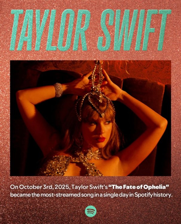 “The Fate of Ophelia” has broken the record for the most-streamed song in a single day in Spotify history! @777666jason @Tafty @UltraCruelSummer @conorw- The Life of a Showgirl - 12th Album