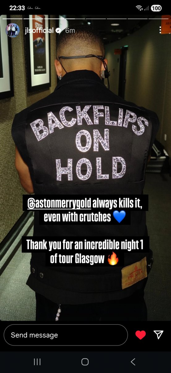 Tour has started tonight in Glasgow - it would appear Aston is doing it in a slightly reduced capacity for now: What an absolute bummer to be on crutches but also such a professional trooping on. Respect 👏🏻