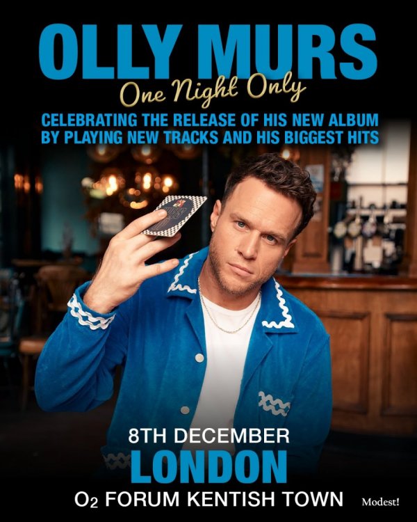 He's doing an album launch show at Kentish Town Forum on 8th December. On sale next Friday: InstagramOlly Murs on Instagram: "BIG NEWS‼️Guys, I’m going to be...1,126 likes, 43 comments - ollymurs on October 24, 2025: "BIG NEWS‼️Guys, I’m going to be playing a show at the O2 Forum Kentish Town in London, on December 8th to celebrate the release of Knees Up...