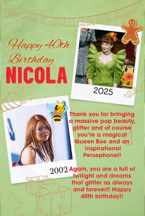 Happy 40th birthday, Nicola !! Thank you for bringing a massive pop beauty, glitter and of course you're a magical Queen Bee and an inspirational Persephone!!! Again, you are a full of twilight and dreams that glitter as always and forever!!